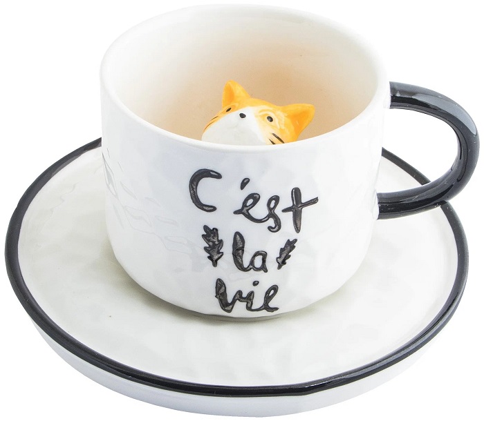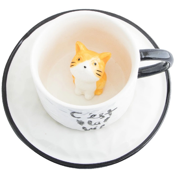 Кружка + тарелочка = идеальный дуэт для любителей чая и кошек!