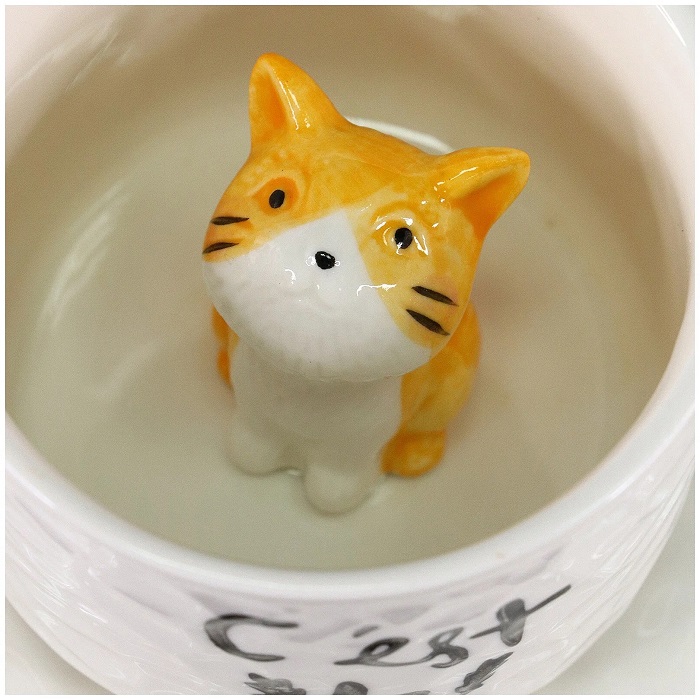 Набор «Рыжий Котик»: красивая кружка с забавным мурлыкой внутри и стильная тарелочка из хорошего керамики.