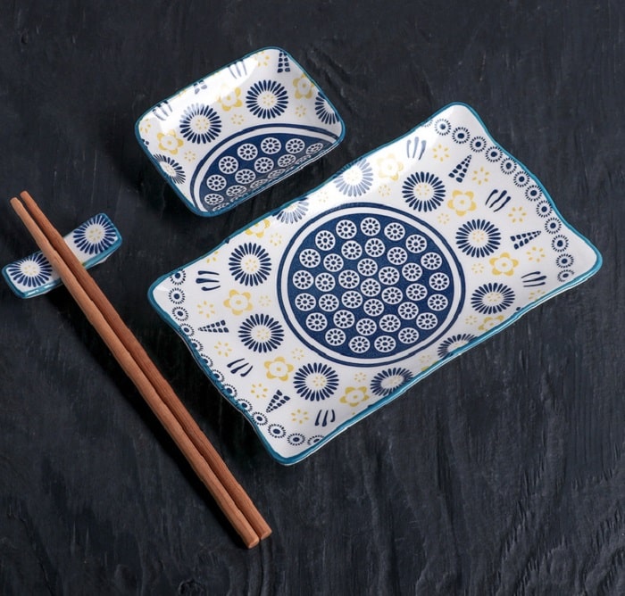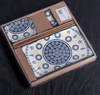 Для тех, кто любит проводить время дома с любимым блюдом на столе, мы перелагаем Подарочный набор для суши «Синий узор» 5 предметов. Оригинальная упаковка не требует дополнительных украшений - это уже готовый подарок!