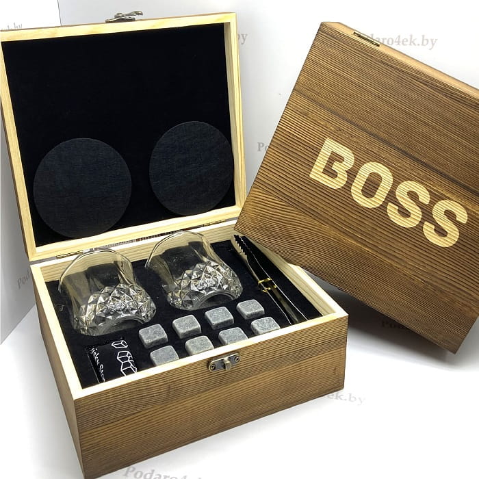 Купить Набор для виски в деревянной коробке «BOSS» со стаканами и камнями для виски в Минске, можно оформив заказ через корзину сайта или позвонив по телефонам указанным на сайте. Так же заказать подарочный набор для виски в деревянной коробке можно с доставкой в любую точку Беларуси (Брест, Гродно, Гомель, Витебск, Могилев, Бобруйск, Барановичи, Новополоцк, Пинск, Борисов, Мозырь и т.д.).