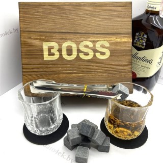 Премиальный подарочный набор для виски «BOSS» на 2 персоны в деревянной коробке