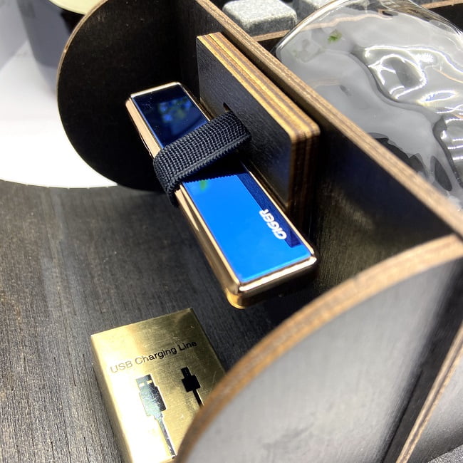 Премиальный подарочный набор – оригинальный комплект для распития спиртных напитков на две персоны, включающий стаканы для виски, камни для виски, зажигалку с подзарядкой от USB.