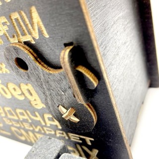Авторский, продуманный до мелочей дизайн. Упаковка представляет собой стильный короб из натурального дерева с оригинальной резной надписью, закрывающийся на защелку;