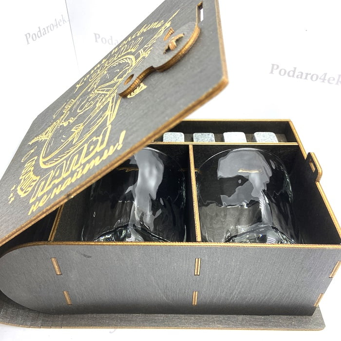 Премиальный подарочный набор – оригинальный комплект для распития спиртных напитков на две персоны, включающий стаканы и камни для виски.