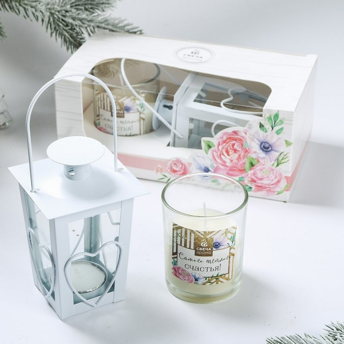 Подарочный набор со свечей «Нежность» включает в себя две свечи: большую и маленькую, а также фонарик-посвечник. Их сочетание создает потрясающую композицию. Пламя свечи мерцающее в фонарике- подсвечнике окутает вас волшебным настроением и наполнит комнату теплом и уютом. Подарочный набор со свечей «Новогоднее настроение» станет гармоничным дополнением Новогоднего праздника, добавляя ему нотки торжественности и таинственности.