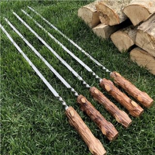 Сделайте подарок своим близким или побалуйте себя. Представьте, как приятно жарить шашлык, нанизанный на красивые мощные шампуры. Деревянная ручка не нагревается и очень удобно лежит в руке.