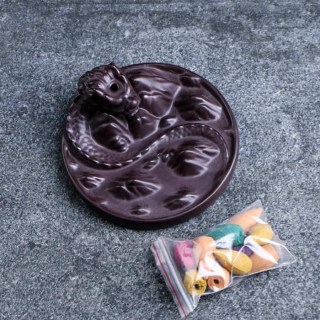 Подставка для благовоний «Дракон в горах» + набор конусов - это отличный сувенир для тех, кто увлекается ароматерапией. Она не займет много места, гармонично впишется в любой интерьер, а также будет долгие годы радовать своего владельца благодаря качеству и материалу исполнения.