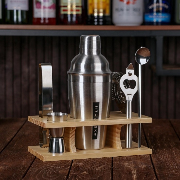 4) шейкер - инструмент для встряхивания и перемешивания ингредиентов коктейля(550 мл.);