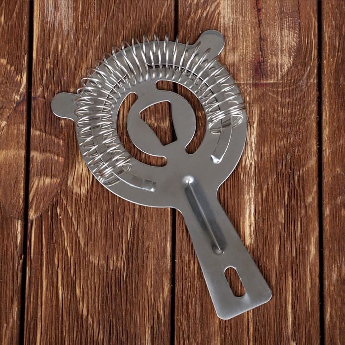 2) стрейнер - инструмент бармена, предназначенный для отсеивания крупных частиц (лёд или кусочки фруктов) при переливании коктейля из шейкера в бокал;
