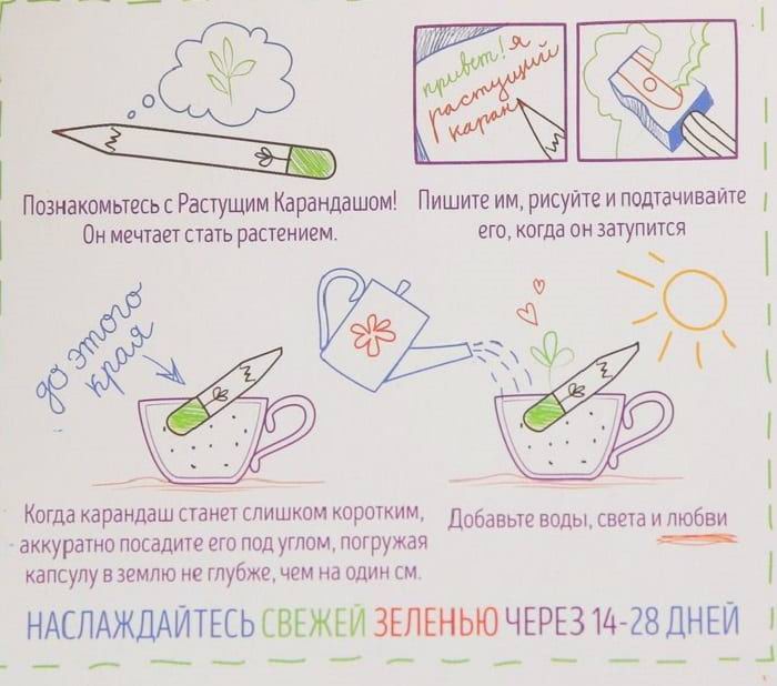 Большой выбор, гармонично собранных, наборов с пряными травами позволяет удовлетворить вкус самых требовательных гурманов. Все травы, выращенные из необычных карандашей, Вы сможете употреблять в пищу даже посреди зимы, подкрепив иммунитет витаминами из свежей зелени или заварив ароматный чайный набор. А любители декоративных цветов смогут вырастить из карандашей яркую клумбу или настоящий альпийский луг.
