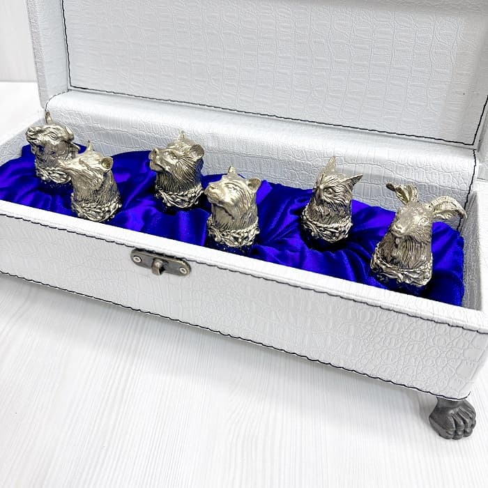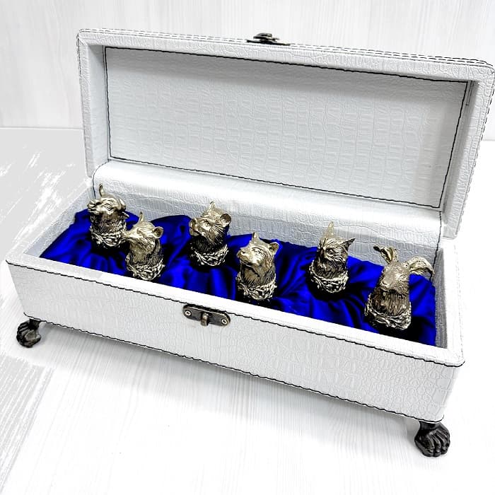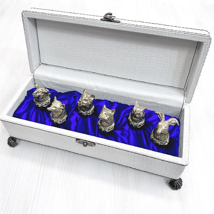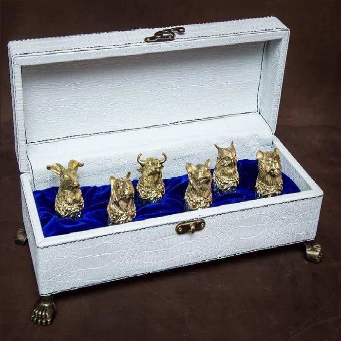 Описание набор стопок-перевертышей с головами зверей из латуни: