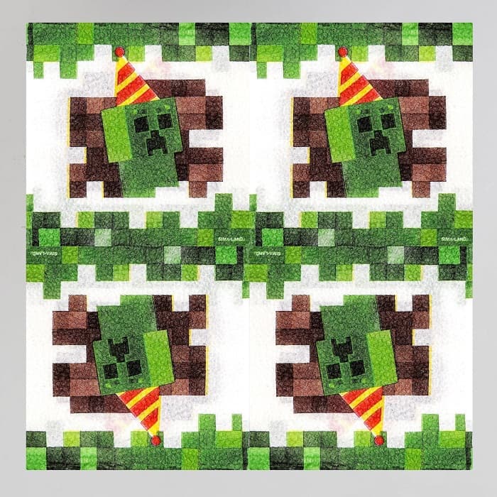 Салфетки «Minecraft» 20 шт. - это стильный и необычный акцент в дизайне Вашей вечеринки! Ваши гости не останутся равнодушными от такой формы представления салфеток. Подарить такой сувенир можно абсолютно любому человеку, обладающему хорошим чувством юмора.
