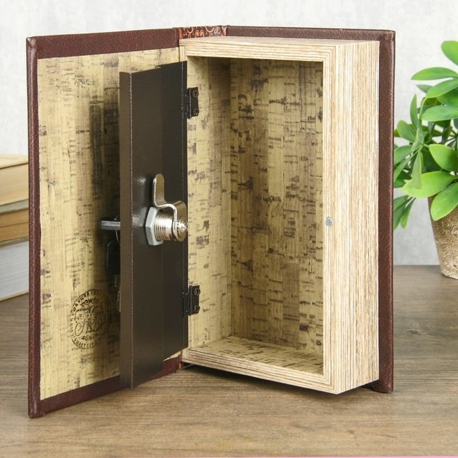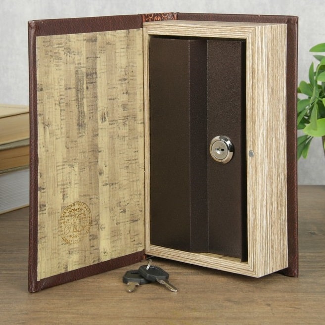 Оригинальное хранилище для самых разных предметов, которое не так-то просто обнаружить! Сейф очень похож на обычную книгу и, находясь на книжной полке, не выделяется своим внешним видом из ряда настоящих томов. Но на самом деле – это настоящий небольшой сейф, запирающийся на ключ и укрывающий от посторонних глаз то, что вам захочется туда спрятать. Эффектный и практичный аксессуар, который будет замечательным подарком – ведь у каждого найдутся тайные мелочи, которые не хочется никому показывать. Главное – не забудьте, какая именно книга хранит в себе приятный сюрприз.