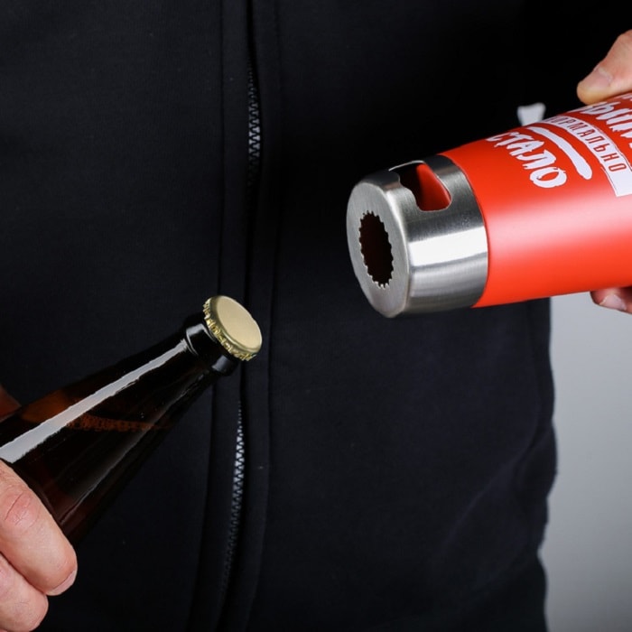 Стакан для пива с двумя видами открывалок- это отличный подарок любителю пенного напитка! Кроме того, что в стакан/ бокал можно налить любимый напиток, так еще и не нужно искать открывалку- она рядом! Сам стакан выполнен из нержавеющей стали. Яркий принт на внешней стороне сделает такой стакан приятным подарком.