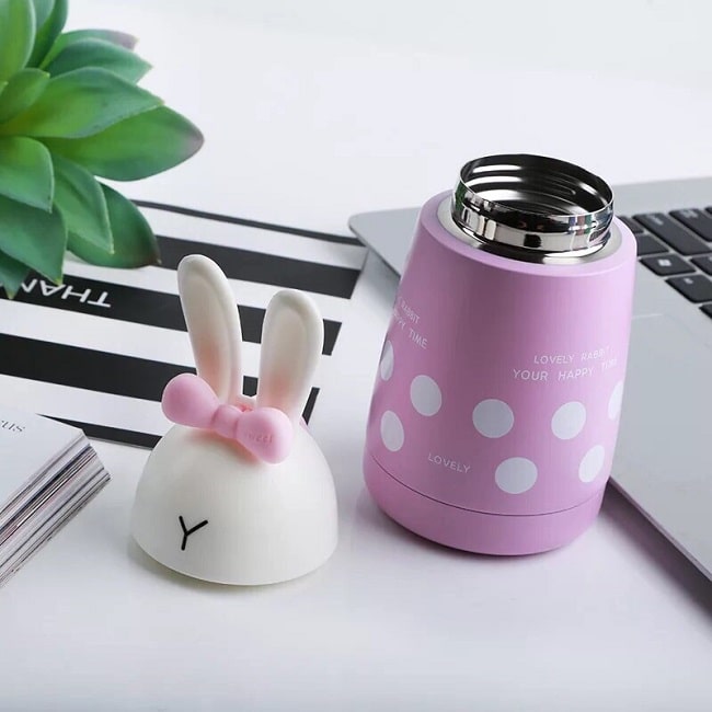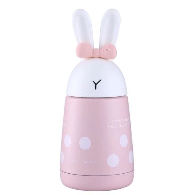 Что может быть милее кролика? Только кролик с бантом! Этот термос не только симпатичный, но ещё и удобный. Благодаря резиновой накладке на дне он не скользит по столу, а резиновый ремешок поможет удержать термос в руке при любых обстоятельствах. Выполнен из металла и пластика.