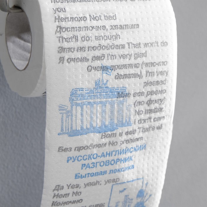 Купить Туалетная бумага-прикол «Русско-английский разговорник» в Минске можно, оформив заказ через корзину сайта или позвонив по телефонам, указанным на сайте. Также заказать туалетную бумагу можно с доставкой в любую точку Беларуси (Брест, Гродно, Гомель, Витебск, Могилев, Бобруйск, Барановичи, Новополоцк, Пинск, Борисов, Мозырь и т.д.).