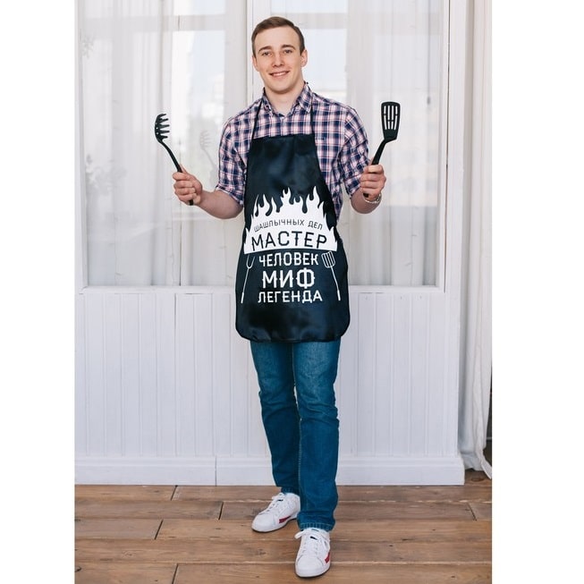 Если Ваша хороший знакомый- бог на кухне, то Веселый фартук «Человек миф», что необходимо! Он не только прекрасно справится с защитой одежды от пятен, но и станет оригинальным дополнением образа, превратив вас в настоящего шеф-повара благодаря эксклюзивному принту!