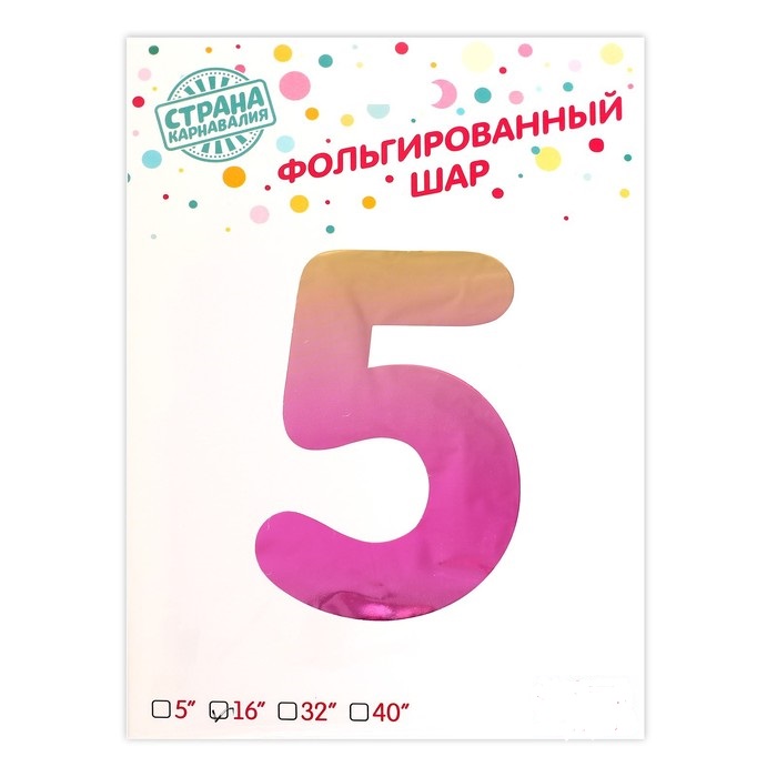 Купить Воздушный шар фольгированный «Цифра 5» 16 d' в Минске, можно оформив заказ через корзину сайта или позвонив по телефонам указанным на сайте. Так же заказать фольгированный шар можно с доставкой в любую точку Беларуси (Брест, Гродно, Гомель, Витебск, Могилев, Бобруйск, Барановичи, Новополоцк, Пинск, Борисов, Мозырь и т.д.).