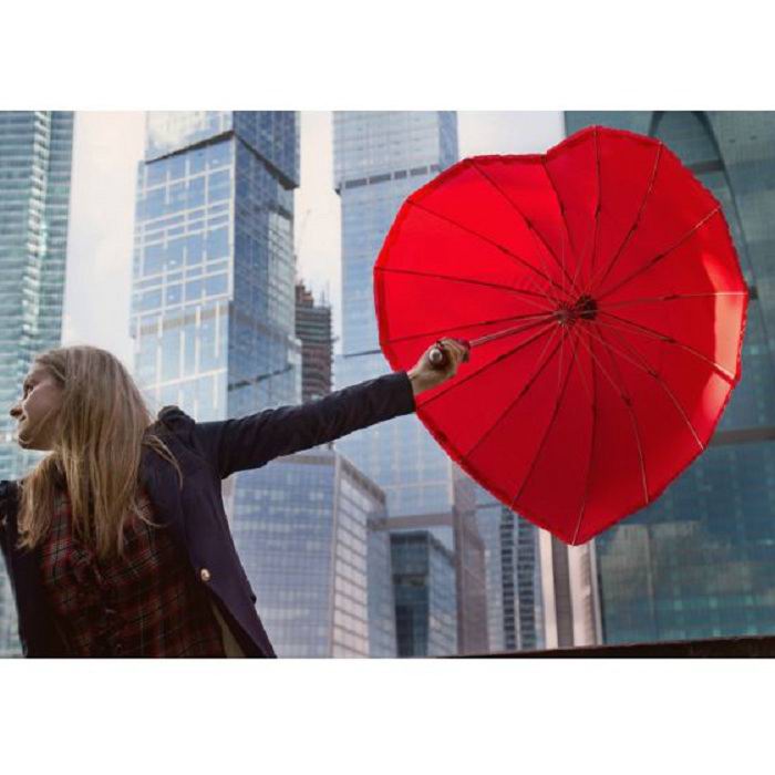 Зонтик выполнен в форме красного сердца, которое непременно обратит на себя многочисленные восторженные взгляды.